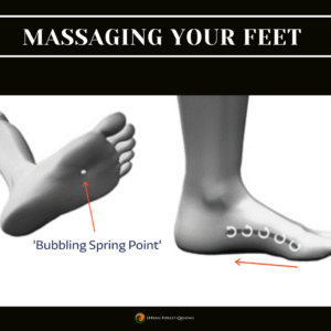 K1 (Bubbling Spring Point) focus on the Bubbling Spring point on the bottom of your foot and the arch. These areas are the most beneficial to massage.